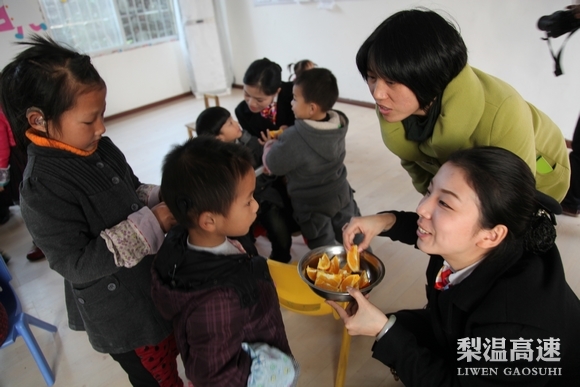 鹰西收费站的姑娘当天来到鹰潭特殊教育学校,看望一群聋哑小孩。一走进学校大门,孩子们就跳着蹦着鼓掌欢迎,姑娘们也亲热的拉起小孩子的手,关心地询问学习情况。姑娘们还给孩子们带来了学习用品、水果等零食,为这群沉浸在无声世界里的孩子们再次带来了欢乐。