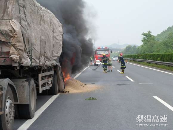 梨温高速:货车行驶中自燃 养护人员全力抢险