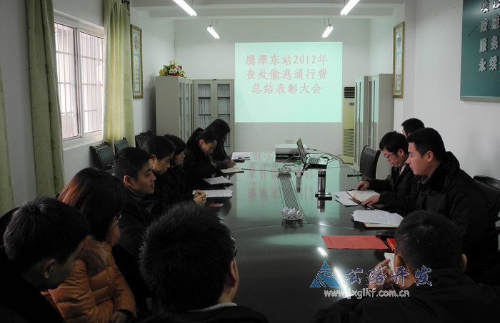 为进一步巩固查处偷逃费成果, 近日,梨温高速鹰潭东收费站组织职工召开2012年度查处偷逃费总结表彰大会。