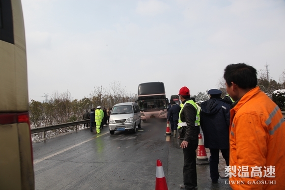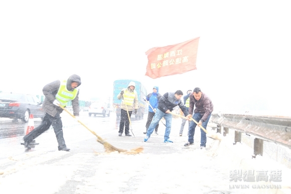 风大雪急时,白茫茫一片的梨温高速上,出现了一群群身影。只见他们纷纷打出梨温高速抗雪小分队、梨温高速党员先锋队、梨温高速团员志愿队等旗号,分散在5个不同路段进行快速人工铲雪,防止路面结冰。地上雪花积了一层,队员们就铲除它一层,天上雪片蒙了眼,就用衣袖拭去,几小时下来,全部人员鞋袜湿透,戚骨连心的冷,没有人喊累怕苦。