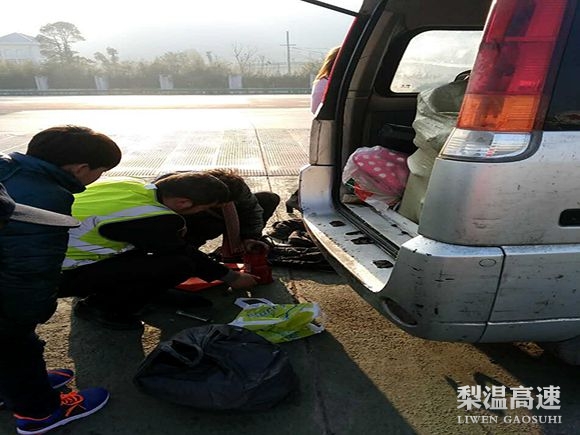 2月7日上午,一车牌为浙A618**的小型面包车驶过赣浙界梨园收费站入口处爆胎,在该站工作人员热心相助下,顺利踏上归途。