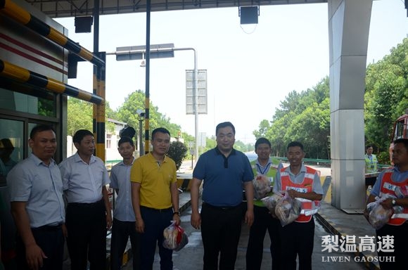 7月26日,烈日酷暑之际,总公司总经理陈立新带着清凉的问候,来到梨温公司进贤收费站、鹰潭西收费站,走进车道岗亭,看望慰问一线员工。总公司副总经理陈爱平、梨温公司总经理潘皓、党委书记周洪达、纪委书记、党委副书记雷霆等同志随同慰问。