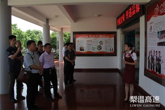 滨州分公司一行同行先后观看了梨温公司、巾帼鹰西、熊文清班组专题宣传片,参观了各处荣誉陈列室、职工之家文化墙等,并对公司企业文化标识、目标、内容等饶有兴趣的询问,对各单位上墙的制度举措拍照记录,对收费管理举措、党建目标管理、安全交通保畅等体系进行认真考察。