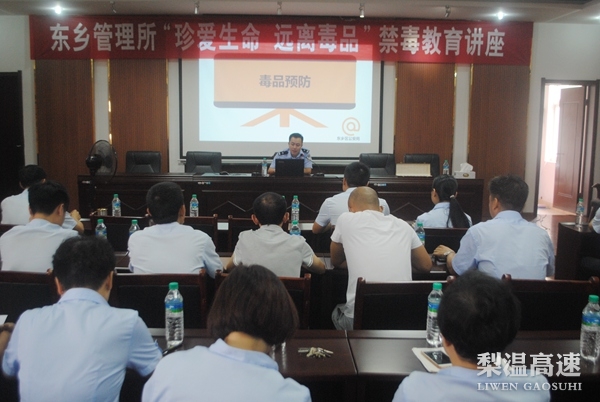 为防范职工涉毒违法犯罪,提高职工禁毒、防毒意识。8月17日上午,东乡收费所邀请抚州市东乡区禁毒大队民警到东乡收费所开展禁毒知识讲座,南昌南管理中心总经理助理付群及相关部门负责同志、东乡收费所干部职工共40余人聆听了讲座。