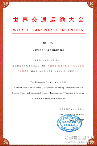 樟树东收费所:刘德雄同志被聘为“世界交通运输大会”委员