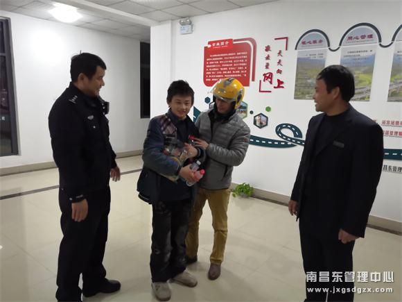 经了解,该男孩从南昌县莲塘走失,误入高速公路。男孩父亲多次表示感谢并说:这么冷的天,要不是冈上收费站的工作人员,这孩子怕是要冻坏,冈上收费站工作人员都是助人为乐的活雷锋!(魏琴)