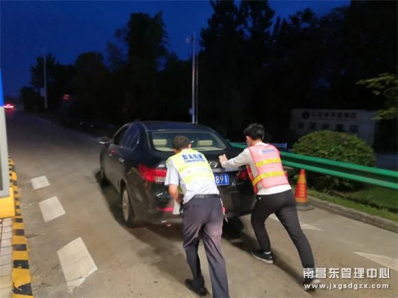 该收费站班长发现上前查看,通过与车主交谈得知轿车发动机故障无法启动。为确保车道畅通,班长立即组织工作人员将轿车推至出口广场安全区。由于车主是外地人,收费站工作人员主动为车主联系了附近维修厂。