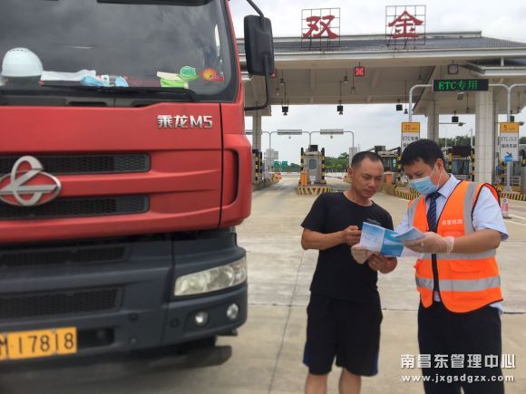 6月22日,南昌南管理中心双金收费站组织当班收费人员充当宣讲员,在收费车道开展绿通预约“培训”活动。