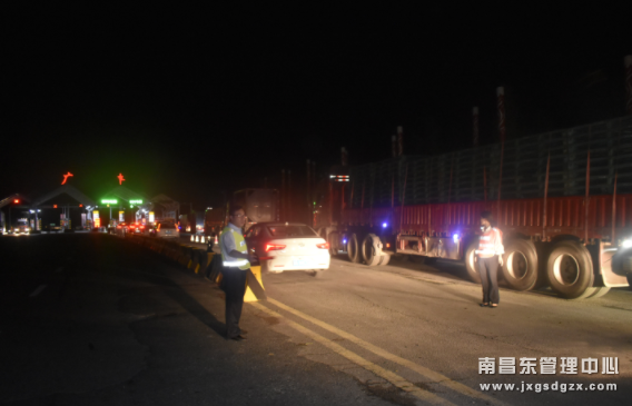 分析情况后,黄站长决定采取第二应急预案,启动联勤联动机制,通过通报驻地高速交警,一方面卡点前移,在高速匝道300米处设卡,分段缓慢放行车辆下高速;一方面关口后撤,在320国道上高速匝道口,布置警力,提醒司机从别的收费站上高速。