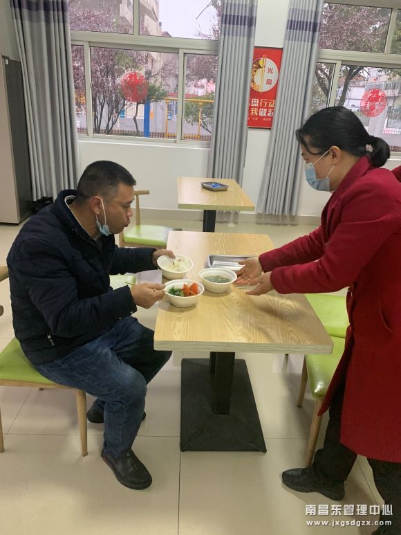 鹰潭西收费站工作人员了解情况,确认来接男士的车辆需要一个多小时到达,将男士带到食堂提供无偿用餐,安慰男士不要着急。