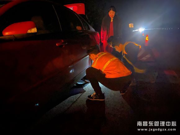 清明期间,江西省交通投集团南昌南管理中心罗湖养护站外业组巡路至S42东昌高速K20+180右幅时,发现一辆湖南牌照的小轿车打着双闪灯停在应急车道上,三角警示牌仅放置在车后十几米,现场情况非常危险。