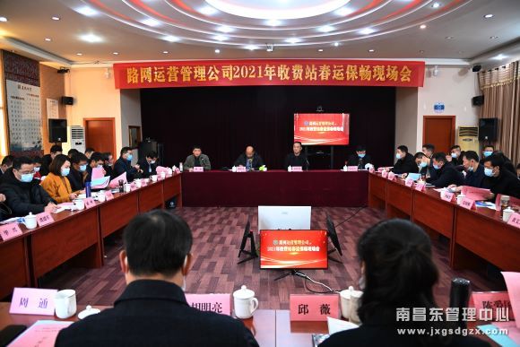 1月21日,路网运营管理公司2021年度春运保畅现场会在南昌南管理中心玉山收费所召开,路网运营管理公司副总经理漆志平出席并讲话,南昌南管理中心总经理万良红致辞,路网运营公司相关部门、各路段管理中心分管领导及保畅相关负责同志参加会议。会议严格按照疫情防控要求控制进行。
