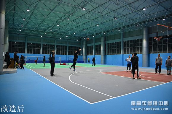 历时两个多月的时间,改造后的球馆焕然一新,蓝色、绿色、灰色、红色四种颜色交相辉映,给人以温暖、舒适感。此集羽毛球、乒乓球、排球多场地等多功能的一个综合类场馆,成为员工休闲娱乐的好去处。(赵亚娟)