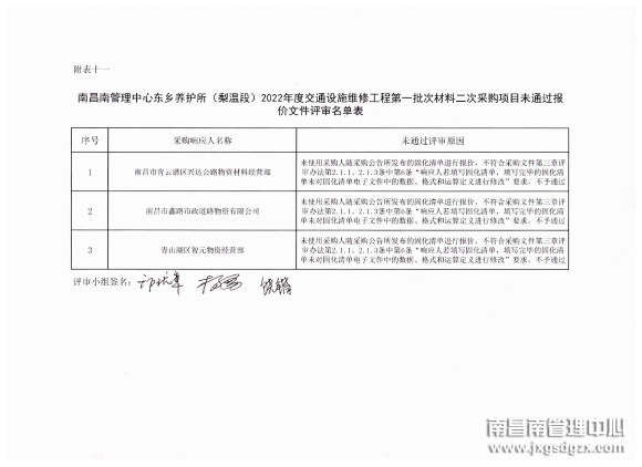 南昌南管理中心东乡养护所(梨温段)2022年度交通设施维修工程第一批次材料二次采购项目流标公告