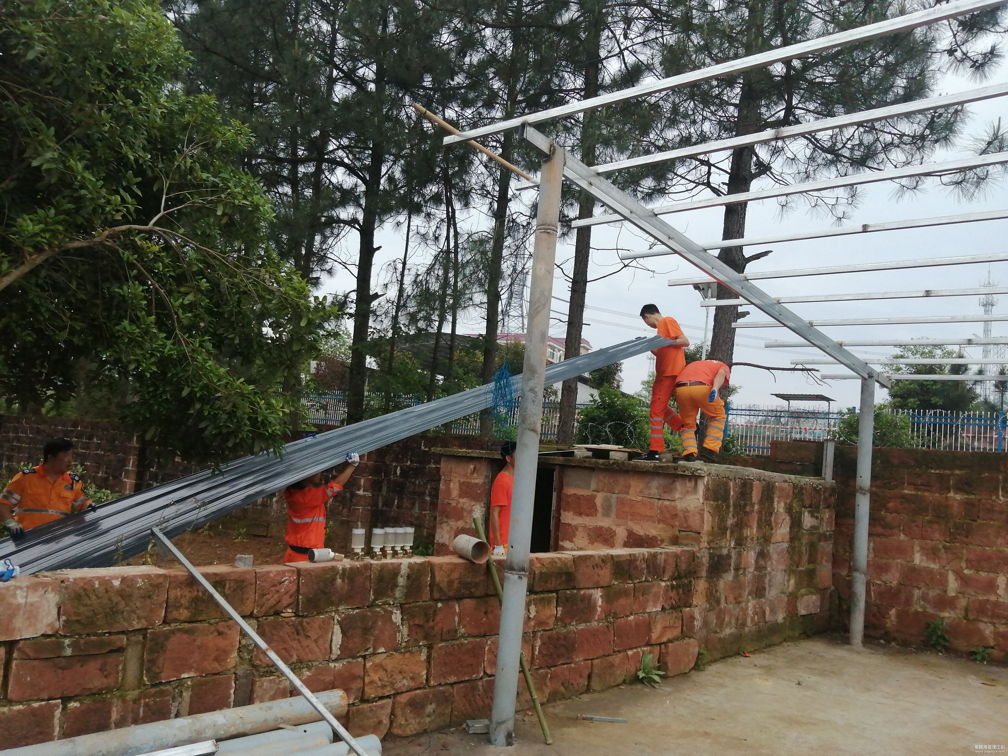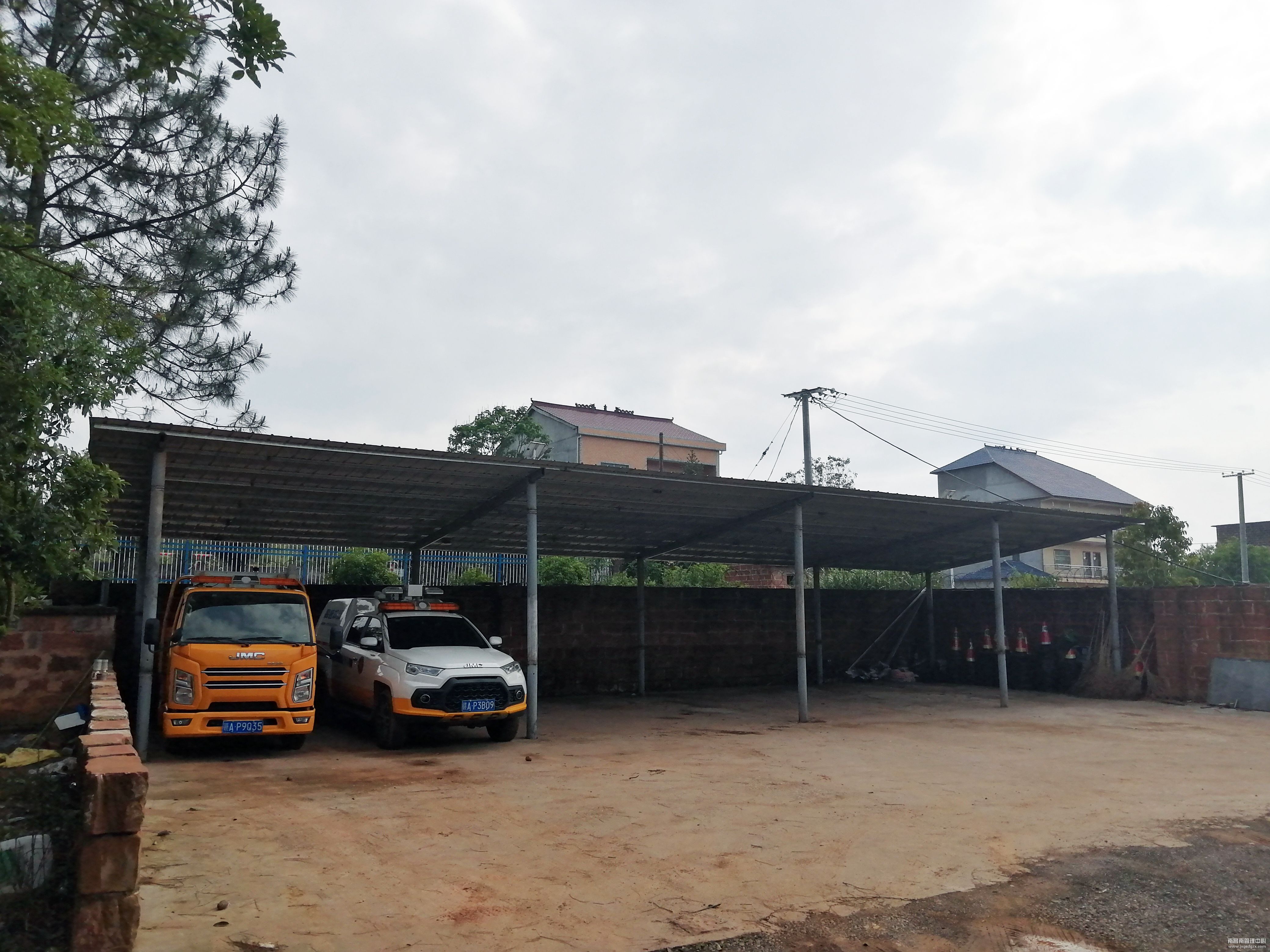 4月26日,南昌南管理中心车辆救援队东乡中队组织员工自己动手修建停车棚。