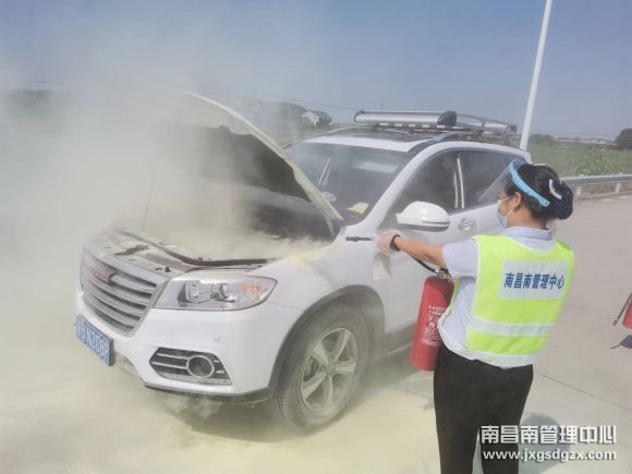 车道当班人员发现后立即启动应急预案,让司乘人员下车,合力将小车推出收费车道至安全地带,避免危及其它过往车辆,并使用灭火器对自燃车辆进行灭火扑救。不到5分钟,车辆明火扑灭。