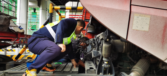 4月10日,在南昌南管理中心杨梅岭收费站,一辆满载货物的大型货车突然在停在出口处。当班班长发现情况后,立即上前去了解情况。