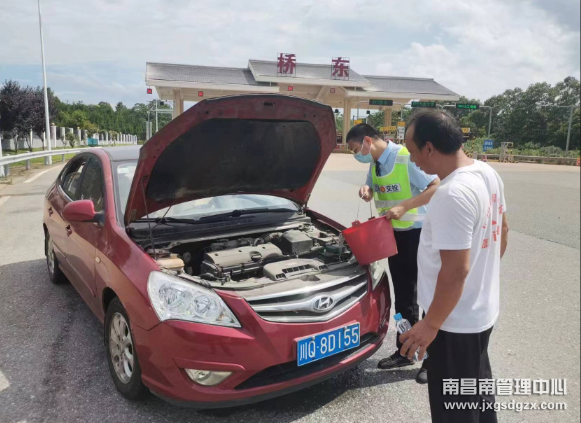 据悉,当时小车在出口车道等待缴费时突然熄火,车辆无法启动。收费班长发现异常后,立马上前询问情况,得知是车辆发生故障启动不了后,为了不影响其他车辆的正常通行和安全,待司机缴费后,收费班长立即将车辆推至安全区域,检查发现车子故障是因水箱缺水而导致熄火,给水箱注水后,车辆故障得以排除。