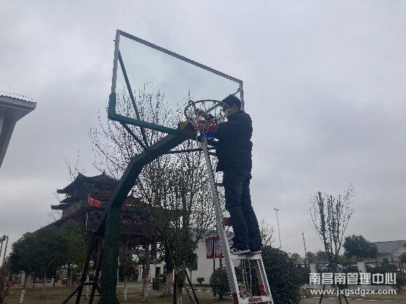 近日,南昌南管理中心樟树东收费站组织人员对篮球框篮网进行更换维护工作。