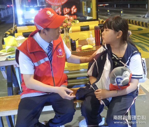 6月5日晚,有一名小女孩边哭边朝着南昌南管理中心上饶西收费站走来。当班收费班长再发现情况后,立即上前将小女孩带离危险的高速入口,在安全区域不断温柔安抚小女孩的情绪,尝试与小女孩进行沟通,可小女孩一直哭个不停始终不肯说话。