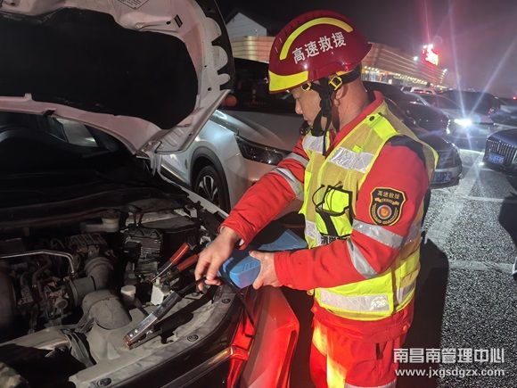 2月11日晚上10点,一小车在沪昆高速三清山服务区亏电抛锚,司机无奈之下求助南昌南车辆救援大队玉山中队,玉山中队迅速出动,为司机暖心搭电。