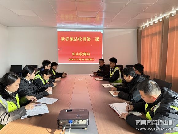 新春已至,春运正忙。为切实强化收费人员廉洁自律意识,筑牢拒腐防变思想防线,保障春运期间收费工作规范有序、风清气正,2月25日,南昌南管理中心铅山收费站组织全体在岗人员开展“新春廉洁收费第一课”专题教育活动,以清廉之风为司乘平安返乡保驾护航。